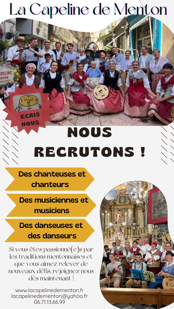 Si vous aimez chanter, danser, que vous jouez d’un instrument ou que vous souhaitez simplement prendre du plaisir en découvrant et partageant ensemble des moments chaleureux, la Capeline de Menton sera ravie de vous accueillir.